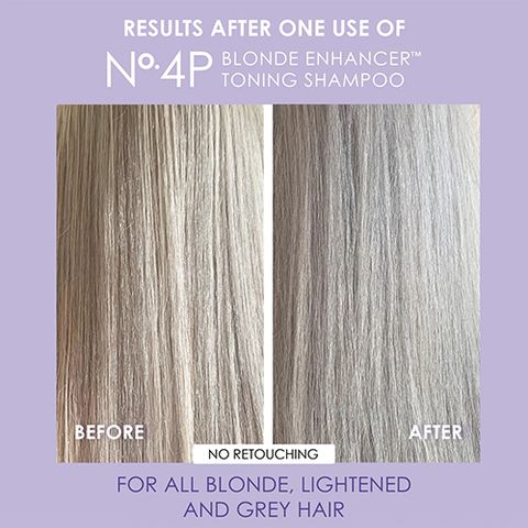 Dầu gội Tím No.4P của Olaplex đậm đặc, giúp làm sạch, nâng tone màu và phục hồi liên kết sợi tóc trong khi vẫn giữ ẩm cho sợi tóc từ chân tới ngọn. Công thức không chứa Sulfate, có kết cấu đậm đặc từ các nguyên liệu tự nhiên, giúp tạo bọt và trung hòa độ ngả vàng (hay còn gọi là khử vàng cho tóc tẩy nhuộm) và tăng độ sáng cho tóc sau 1 lần sử dụng cho tất cả các mái tóc nhuộm vàng, bạch kim, xám hay khói sáng.