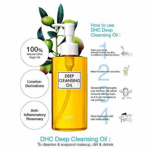 • Dầu tẩy trang làm sạch sâu olive DHC giúp rửa sạch các lớp trang điểm, đánh bay bụi bẩn cứng đầu, bã nhờn cũng như tế bào chết mà KHÔNG để lại cảm giác trơn nhờn.