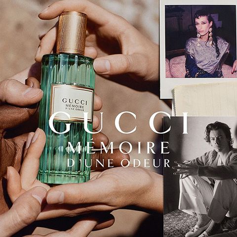 Mẫu chai nước hoa Gucci Mémoire D’Une Odeur có hình dáng như cây cột trong các công trình thời La mã cổ đại, lấy cảm hứng từ một loại nước hoa Gucci cũ từ đầu những năm 90. Tượng trưng cho bầu trời đêm đầy sao và thế giới trần gian nhìn chằm chằm vào nó trong sự kỳ diệu, chiếc hộp màu xanh lá cây của nước hoa được trang trí với các công cụ Celestial như những bức tranh của các nhà thờ La Mã và gothic thời Trung cổ và Phục hưng ở châu Âu. Mẫu thiết kế đặc biệt này gợi nhớ lại những bức bích họa của Giotto trong Nhà nguyện Scrovegni ở Padova.