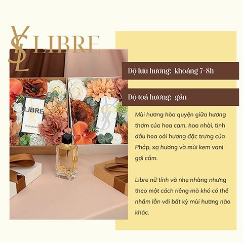 Libre của hãng Yves Saint Laurent là dòng nước hoa nữ được ra mắt vào năm 2019 bởi sự bắt hay hợp tác giữa chai chuyên gia nước hoa Anne Flipo và Carlos Benaim.  Thiết kế của Libre gây ấn tượng mạnh mẽ về tính độc đáo, sang trọng và tinh tế mà hãng Yves Saint Laurent vẫn thường ưu ái dành cho các bộ sưu tập thời trang danh tiếng của mình. Libre là một mùi hương hoa Phương Đông, nổi bật với nhóm hương chính như Hoa lavender quyến rũ và Hoa cam tươi mát, thảo mộc. Sự góp mặt của Vani giúp cô nàng Libre trở nên ngọt ngào và quyến rũ hơn, nhưng vẫn giữ được độ thanh lịch và tươi mới khi Note hương cam vẫn hiện hữu. Sự sang trọng, gợi cảm và cá tính là điều hãng Yves Saint Laurent muốn gửi gắm đến cô nàng kiêu kỳ này.